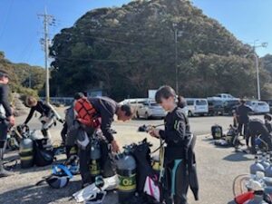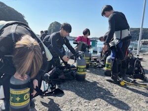 ドライスーツを全部着ると暑すぎるので皆様下だけに