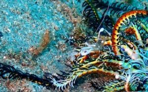 イソギンチャクに住むことが多いエビもウミシダにずっと