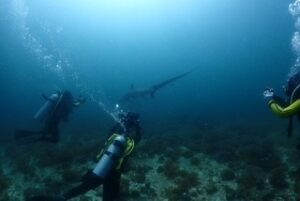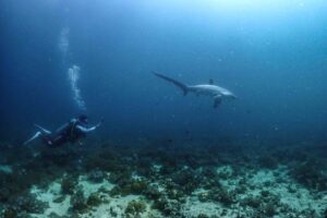 マラパスクアでニタリサメに囲まれながらミッチーが